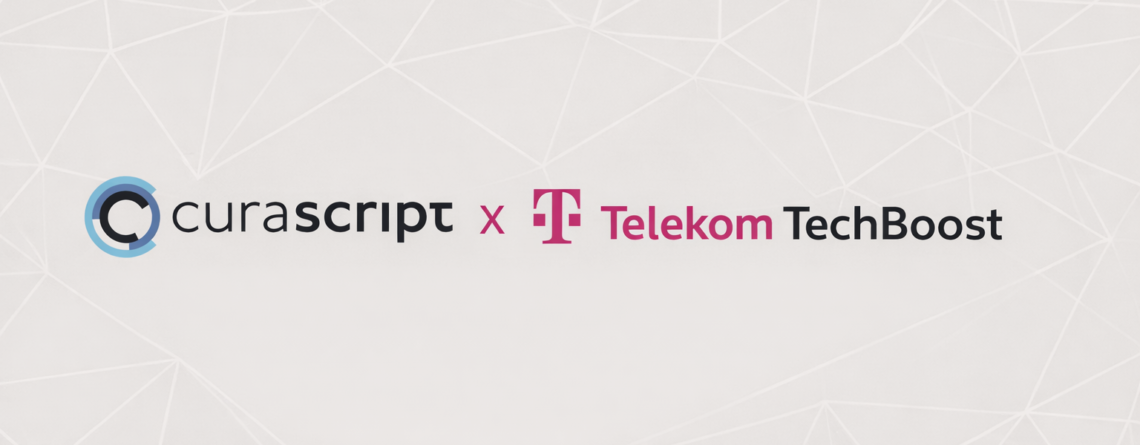 CuraScript ist ab sofort Teil des Telekom TechBoost Programm – einem Förder- und Kooperationsprogramm der Deutsche Telekom für innovative Technologieunternehmen. Mit der Aufnahme in das Programm profitieren wir nicht nur von einem starken Netzwerk, sondern auch von direkten Zugängen zu Infrastruktur, Vertrieb und strategischen Partnerschaften.